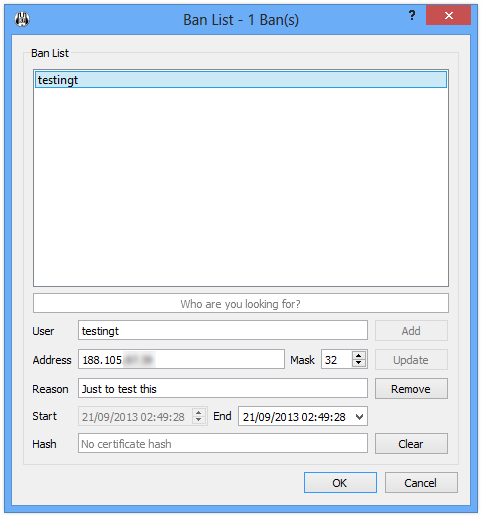 With the improved banlist you can add, search, view and edit existing bans much easier than in previous versions of Mumble.