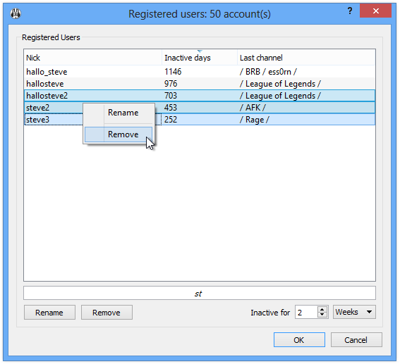 The new manager displays the username, and if the server is version 1.3.0 or higher the time since the user was last seen and the channel the user was last seen in.
